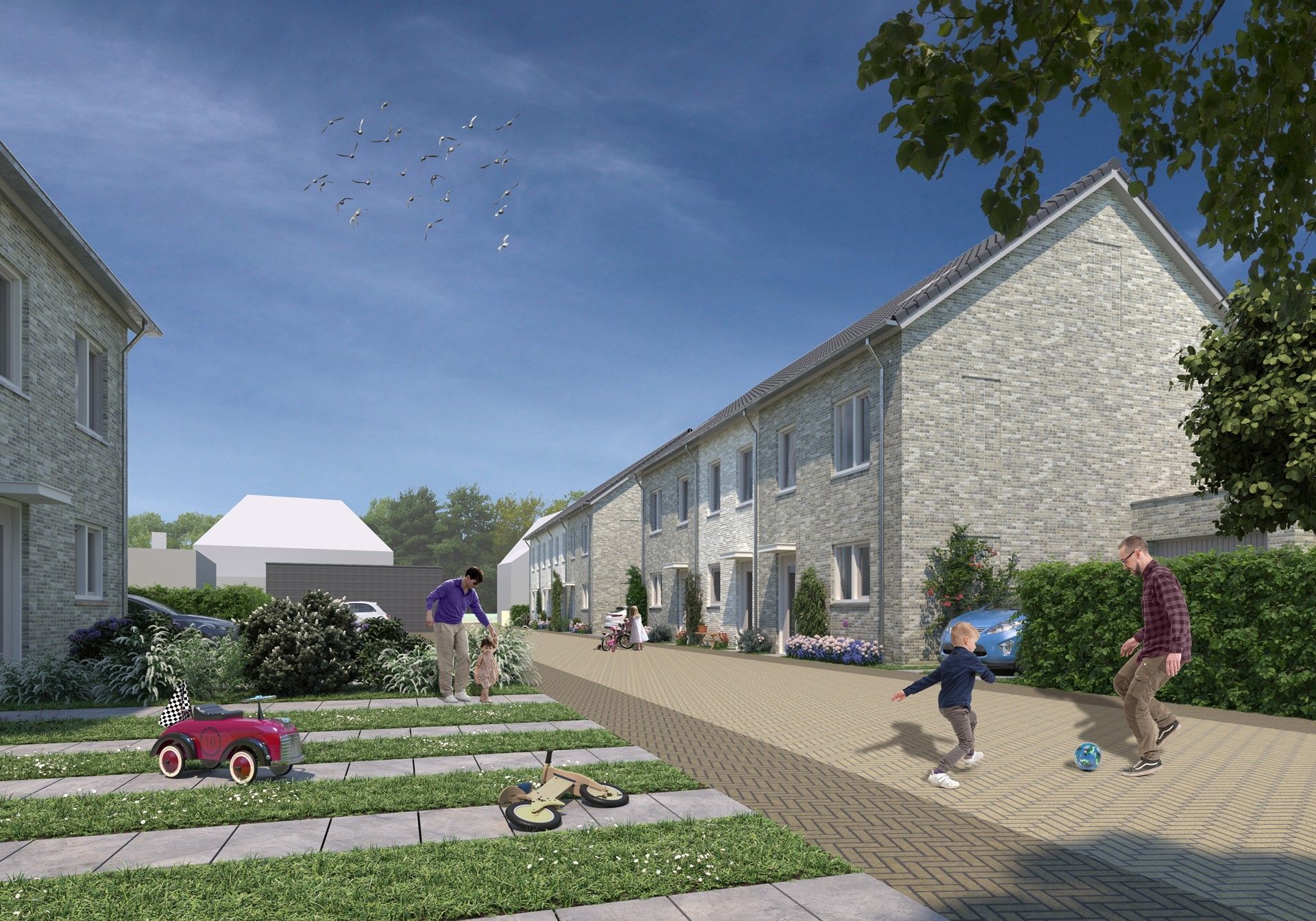 Het woonerf is alleen bereikbaar via de Dorpsstraat, zodat een autoluw woonerf ontstaat waar auto’s te gast zijn. Hier kunnen de kinderen veilig op straat spelen terwijl u geen zorgen heeft over de energierekening of het onderhoud van uw woning.
